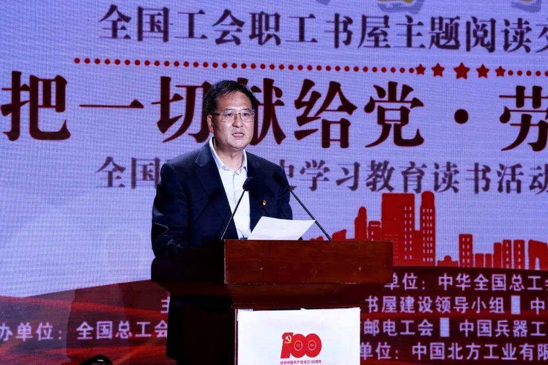 活動(dòng)由全總宣教部、中國(guó)國(guó)防郵電工會(huì)、中國(guó)兵器工業(yè)集團(tuán)有限公司黨群工作部、中國(guó)工人出版社共同承辦,中國(guó)北方工業(yè)有限公司協(xié)辦。來(lái)自中華全國(guó)總工會(huì)、全國(guó)工會(huì)職工書(shū)屋建設(shè)領(lǐng)導(dǎo)小組成員、部分全國(guó)工會(huì)職工書(shū)屋公益代言人,各全國(guó)產(chǎn)業(yè)工會(huì)、全總各部門負(fù)責(zé)同志,部分省市總工會(huì)副主席、宣教部長(zhǎng),兵器工業(yè)集團(tuán)一線勞模工匠、職工代表等參加活動(dòng)。