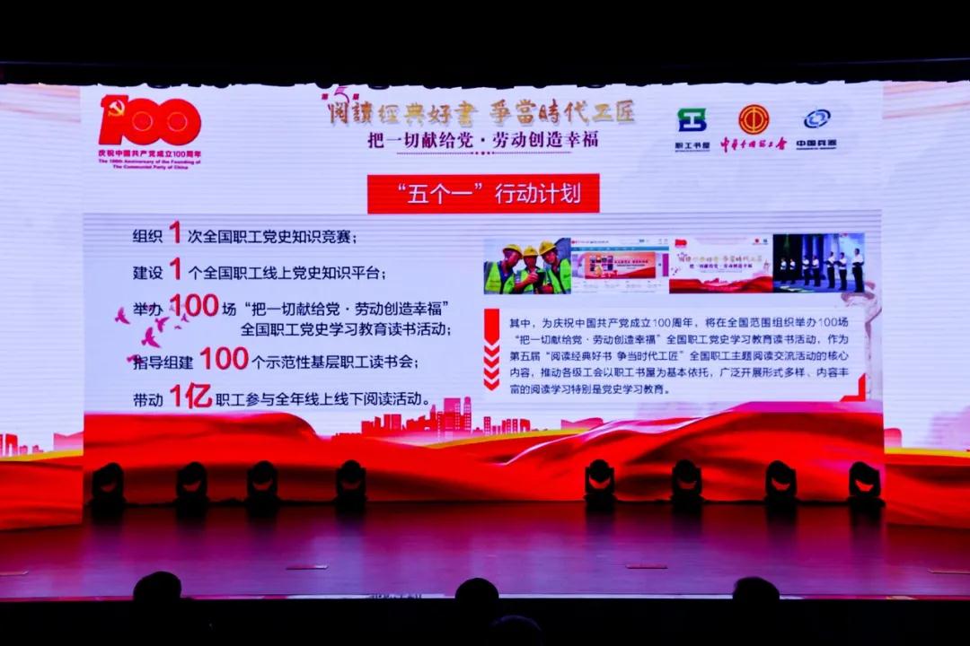 陳剛指出,持續(xù)在廣大職工中開(kāi)展主題閱讀活動(dòng),是工會(huì)組織貫徹落實(shí)習(xí)近平總書(shū)記關(guān)于“要提倡多讀書(shū),建設(shè)書(shū)香社會(huì),不斷提升人民思想境界、增強(qiáng)人民精神力量”要求的具體行動(dòng)。今年是中國(guó)共產(chǎn)黨成立100周年,黨中央要求在全社會(huì)開(kāi)展黨史、新中國(guó)史、改革開(kāi)放史、社會(huì)主義發(fā)展史宣傳教育。深入開(kāi)展職工主題閱讀活動(dòng),并將之與黨史學(xué)習(xí)教育緊密結(jié)合,對(duì)于教育廣大職工緊跟共產(chǎn)黨、奮進(jìn)新時(shí)代,充分調(diào)動(dòng)起億萬(wàn)職工投身全面建設(shè)社會(huì)主義現(xiàn)代化國(guó)家新征程的熱情,具有十分重要的意義和作用。 陳剛強(qiáng)調(diào),要聚焦思想政治引領(lǐng),深入開(kāi)展職工閱讀活動(dòng),與開(kāi)展“中國(guó)夢(mèng)·勞動(dòng)美--永遠(yuǎn)跟黨走 奮進(jìn)新征程”主題教育活動(dòng)有機(jī)結(jié)合,引導(dǎo)廣大職工堅(jiān)定不移聽(tīng)黨話、跟黨走。要把開(kāi)展職工閱讀活動(dòng)作為深化產(chǎn)業(yè)工人隊(duì)伍建設(shè)改革、提高職工整體素質(zhì)的重要途徑,培養(yǎng)職工良好的閱讀學(xué)習(xí)習(xí)慣,造就更多高素質(zhì)技術(shù)技能人才、能工巧匠、大國(guó)工匠。要聚合平臺(tái)陣地優(yōu)勢(shì),推動(dòng)職工書(shū)屋與工人文化宮、職工服務(wù)中心等工會(huì)服務(wù)場(chǎng)所及網(wǎng)絡(luò)平臺(tái)陣地融合發(fā)展,堅(jiān)持職工為本、貼近基層,突出公益性、服務(wù)性,實(shí)現(xiàn)創(chuàng)新升級(jí),不斷激發(fā)活力,打造億萬(wàn)職工文化家園。要引導(dǎo)職工求知善讀,博學(xué)精進(jìn),勵(lì)學(xué)敦行,共同譜寫(xiě)勞動(dòng)光榮的華彩樂(lè)章,匯聚團(tuán)結(jié)奮進(jìn)的強(qiáng)大正能量。