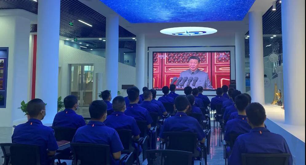 集團(tuán)公司總經(jīng)理、黨組副書記劉大山,黨組副書記周艦,黨組成員、總會計(jì)師張華,紀(jì)檢監(jiān)察組組長、黨組成員陳學(xué)釧,黨組成員、副總經(jīng)理鄒文超,黨組成員、副總經(jīng)理植玉林帶領(lǐng)總部全體職工觀看慶祝大會,各單位組織機(jī)關(guān)干部、科研人員、車間工人等通過集中收看、電視、電腦、手機(jī)網(wǎng)絡(luò)等方式觀看慶祝大會。