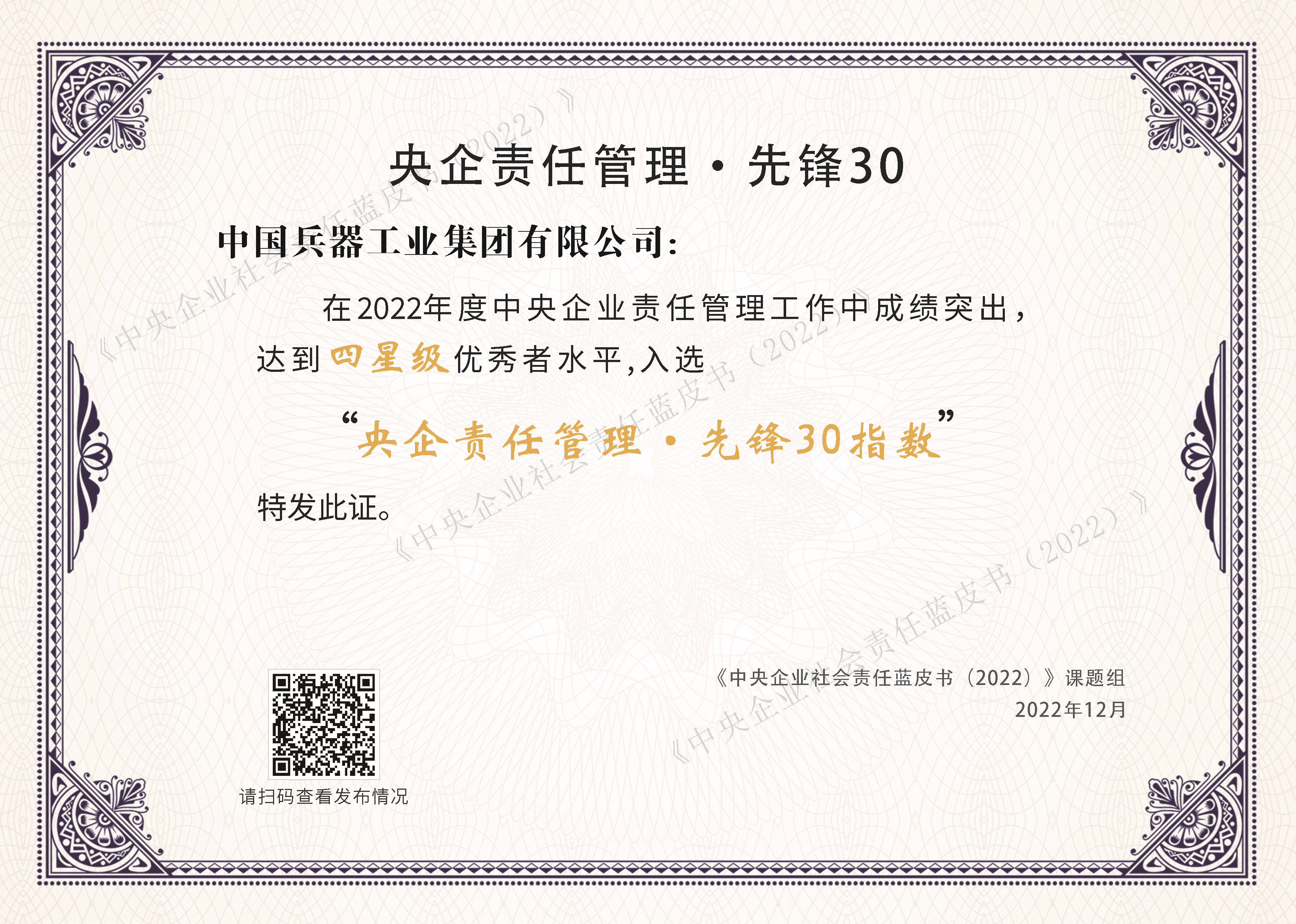 12月20日,由國務院國資委社會責任局主辦、中國社會責任百人論壇承辦的“新征程新責任——《中央企業社會責任藍皮書(2022)》《國資國企社會責任藍皮書(2022)》發布活動”在京召開,國務院國資委黨委委員、秘書長彭華崗出席并講話?!侗鞴I集團堅定不移推進綠色低碳發展》作為優秀案例入選《中央企業社會責任藍皮書(2022)》,充分展示了兵器工業集團在綠色低碳發展方面的責任擔當和履責成效。同時,兵器工業集團責任管理達到四星級優秀者水平,成功入選“央企責任管理·先鋒30指數”?!把肫筘熑喂芾怼は蠕h30指數”是對中央企業在責任組織、責任融合、責任溝通等方面的建設情況進行綜合評價的專項指數,為今年首次發布。 兵器工業集團堅定不移推進綠色低碳發展 中國兵器工業集團有限公司堅決貫徹習近平生態文明思想,采用系統工程的理念,大力實施環境保護綜合提升行動,扎實推進能源資源集約利用,積極開展碳達峰行動方案研究,持續加大節能環保資金投入力度,實現綠色低碳發展,為集團公司履行強軍首責、實現高質量發展奠定了堅實基礎。 一、背景 近年來,國家陸續發布多項政策文件,對企業綠色低碳發展提出要求。兵器工業集團作為國資委管理的唯一一家節能減排重點類軍工央企,節能環保任務艱巨。集團公司積極踐行節約資源和保護環境的基本國策,深入落實黨中央、國務院關于打好污染防治攻堅戰和碳達峰、碳中和工作的重大決策部署,多措并舉,堅決守牢生態環境保護底線。 二、責任行動 (一)深入學習領會習近平生態文明思想,全面貫徹落實中央決策部署 兵器工業集團黨組多次通過黨組(擴大)會、中心組學習等形式深入學習領會習近平生態文明思想和習近平總書記關于生態文明建設的重要論述,編印《習近平總書記關于生態文明建設重要講話精神》學習讀本,在全集團范圍內開展多層次、多維度、系統性學習教育活動。深入調研,精心部署,研究制定環境保護綜合提升行動方案以及配套的長江、黃河流域企業生態環境保護工作方案,確保中央關于生態文明建設的重大決策部署得到全面貫徹落實。 (二)持續健全長效管理機制,持續深化主體責任落實 兵器工業集團黨組專題研究制定《生態環境保護責任制度》,首次以制度形式明確集團公司領導、各級單位、總部部門的生態環境保護責任,為全面落實生態環境保護各級主體責任奠定了制度基礎,并在此基礎上進一步制定固定資產投資項目節能環保管理等制度,形成了以《生態環境保護責任制度》為頂層制度、13項配套制度構成的“1+13”節能環保制度體系。采用“一企一清單”模式分解細化年度節能環保重點工作,每年下達清單任務200余項,高效統籌全集團“一盤棋”落實節能環保主體責任。 (三)積極推進碳達峰碳中和工作,不斷提升節能降碳效率 兵器工業集團黨組完整、準確、全面貫徹中央關于碳達峰碳中和工作的重大戰略決策,將其納入國企改革三年行動統籌部署、一體推進。同時,積極實施鍋爐爐窯等主要用能設備節能改造、高耗能落后設備淘汰等舉措,2019年至2021年共計投入節能改造資金近10億元,在高速發展的同時取得節能降碳的扎實成效。 (四)大力開展污染防治能力建設,扎實解決突出環境問題 兵器工業集團黨組以前所未有的決心和魄力,大力推進污染防治能力建設,2019年至2021年投入環保資金50多億元,全面實施北化研究院集團甘肅銀光化學工業集團有限公司東大溝土壤污染治理、一機集團“845線”固體廢物堆場整治、華錦集團尾氣治理等污染防治項目,化學需氧量、二氧化硫、氮氧化物排放量指標持續下降,滿足了全面達標排放能力需求,解決了一批重大歷史遺留環保問題。 (五)全面推進精細化管理,扎實提升基礎管理水平 兵器工業集團黨組堅決落實生態文明體制改革要求,扎實部署落實排污許可制度改革任務,實現了近300戶法人單位的排污許可證全覆蓋,對全部產污環節、污染治理設施和排污口實施了清單化管理。高標準對照中央環保督察要求和排污許可證技術規范,制定環保資料清單指引,明確應建立的200余類資料要求,督促指導全系統各層級建立環保資料5萬余份。創新開展交叉檢查、巡查自查工作,形成了全層級、全員參與的“大監督”模式,全面督促整改各類隱患問題,有效推動了節能環保領域管理提升。 (六)持續強化綠色低碳發展,積極推動全面綠色轉型 兵器工業集團黨組秉承“綠水青山就是金山銀山”理念,不斷增添集團公司高質量發展的綠色底色和成色,積極開展源頭治理、系統治理、整體治理,多家單位開展工藝優化,淘汰氰化電鍍工藝,采取低鉻鈍化等清潔工藝,使用水性漆等清潔原輔材料,開展廢液廢油的資源化利用,推動了集團公司綠色低碳發展。 克羅地亞塞尼風電項目為“一帶一路”清潔賦能 三、履責成效 1.節能減排指標大幅改善 近年來,兵器工業集團節能減排指標大幅下降,全面超過中央企業平均水平,2021年化學需氧量、二氧化硫、氮氧化物排放量相比2018年分別下降6%、27%、23%;綜合能耗相比2018年下降3%。集團公司多年未發生環境污染事件。 2. “紅土”“紅水”“渣山”等歷史遺留問題徹底解決 一機集團“845線”固體廢物堆場整治項目通過內蒙古自治區生態環境主管部門驗收;北化研究院集團所屬遼寧慶陽特種化工有限公司及